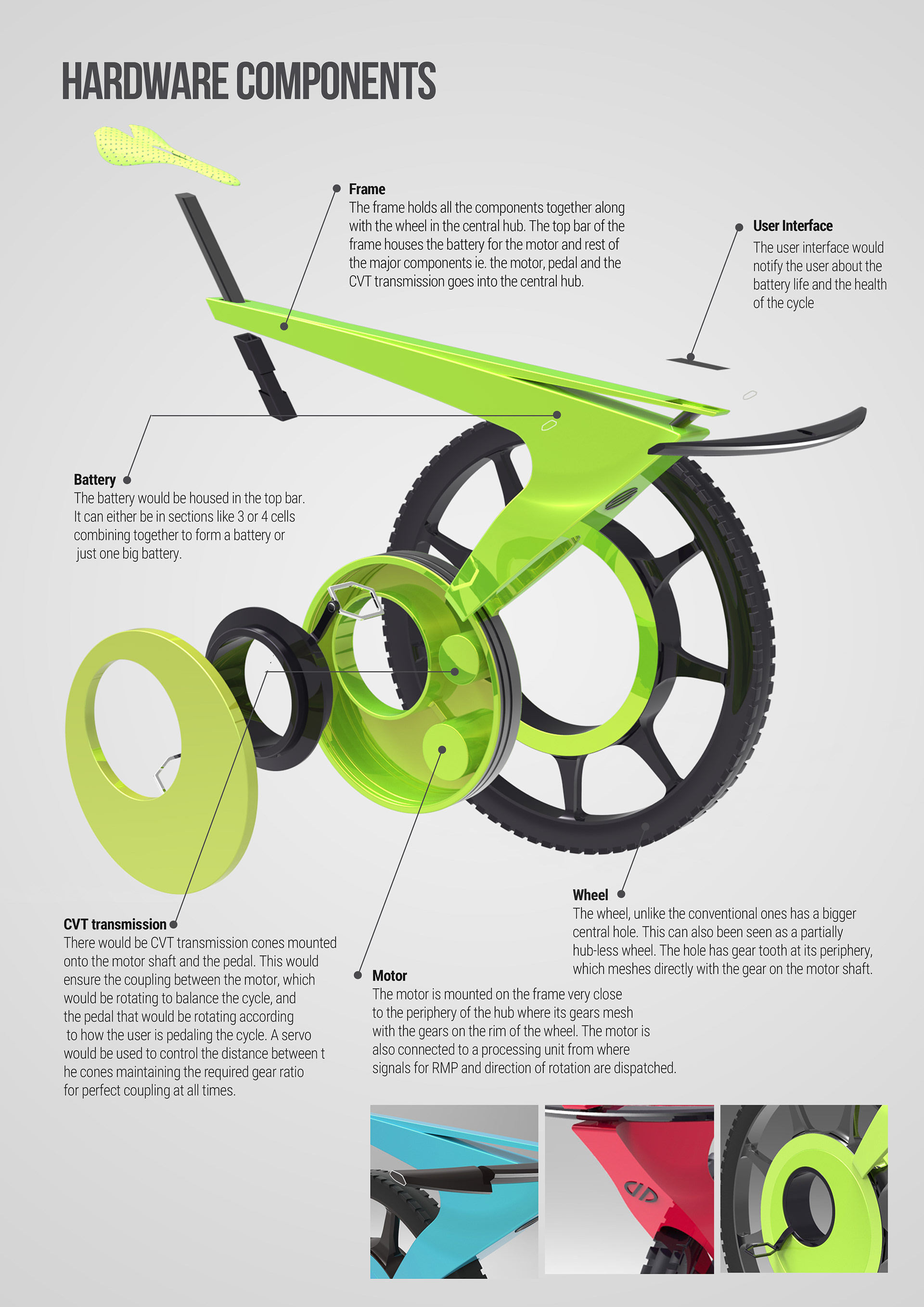 A unicycle that addresses the problem of space, balancing and milage. The first ever unicycle design which is pedal assisted. Patented in 2016.
